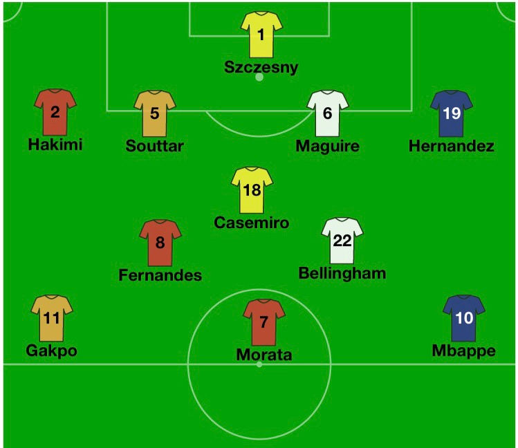LW: KYLIAN MBAPPE (FRANCE) - The PSG forward has probably been the player of the tournament so far given the performances he's put in for his team. He's the joint top goal scorer with 3 and has caused defenders all kinds of problems with his pace and skills. He's on course to win player of the tournament and the golden boot if he keeps up the form he's in.